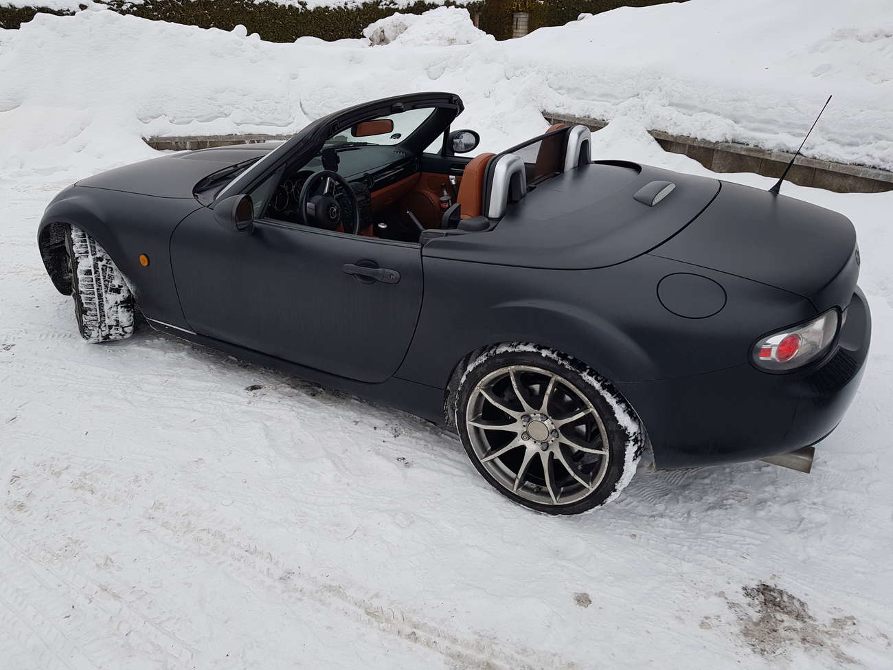 A tak jsem našel tu svou a koupil si ji k Vánocům 2017 – byla oproti ostatním v nabídce drahá, ale zdálo se, že za to stojí. Tentokrát byl silnější motor jasná volba, samosvor a klimatizace taky, hledal jsem nižší nájezd. Tahle navíc měla několik úprav, který mě oslovily. V útrobách je schovaný modul, díky kterému sériové rádio umí Bluetooth s funkčním ovládáním z volantu. Jiná krabička mi zas umožňuje ovládat střechu za jízdy jedním stiskem tlačítka (v sérii to jde jen když auto stojí, což je obscénní). Sportovní vejfuk se zajímavějším zvukem než série. Lehké navýšení výkonu (chip). Zajímavá černá matná fólie (polep)…