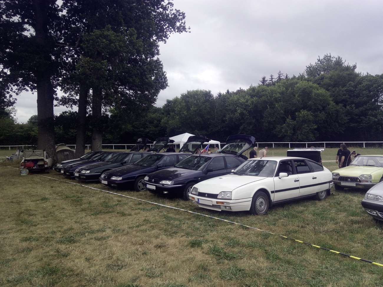 Po registraci jsme se odebrali do kempu. Kamarád s XMkem z Bíliny, protože přijel brzy, měl už rozložený stan, tak jsme se tam trochu nahňácli. :) A pak se ozvaly ještě další a další české posádky, tak na konec se nás na jednom fleku sešlo pět XM, Xantie, CX, dvě GS a Ami8 Break. :) Česká vesnička založena. Na konec se k nám přihlásila ještě posádka s C5, která kepovala na jiném místě. Po rozbití tábora jsme se rozhodli podívat, po kempu. Kemp byl rozložen na dostihovém závodišti. Jak uprostřed, tak i kolem okruhu. Auta se tam scházela zajímavá a od všeho něco. Kromě např. DS/ID či Traction Avantů pak za zmínku rozhodně stála třeba tří či čtyřnápravová XM a CX od úpravce Tissier či Pijpops, C4 L (novější C4 sedan) z Ruska nebo několik RHD modelů z Velké Británie. Na víc už nebyla moc energie…