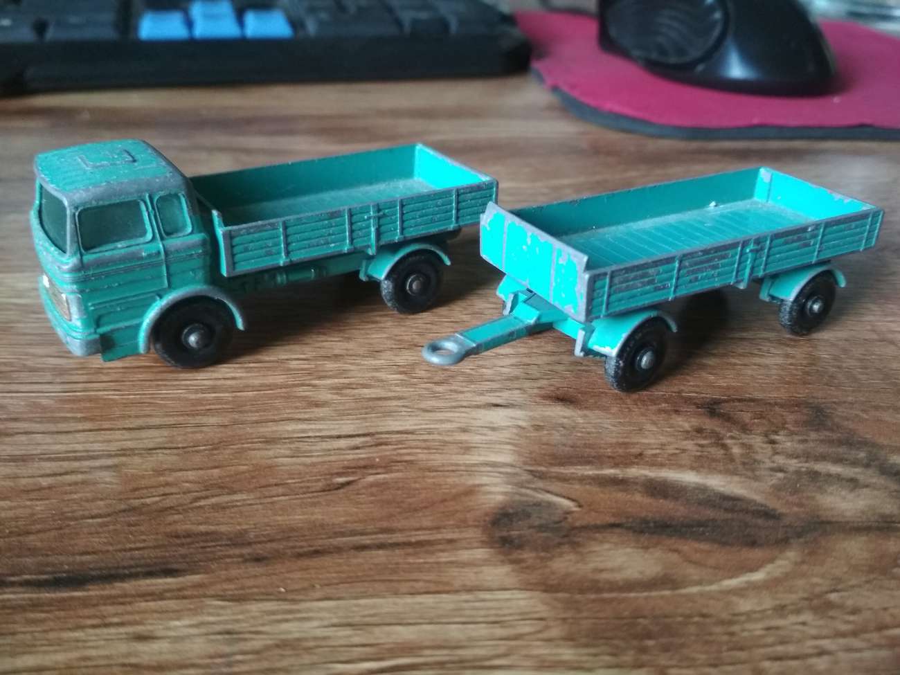 Posledním kandidátem je souprava Mercedes trucku a návěsu. Oba jsou dobité, bez zaplachtování (mám repliky), nejedná se o nic složitého, přesto by to mohl být zajímavý projekt.