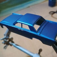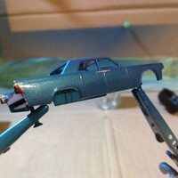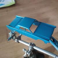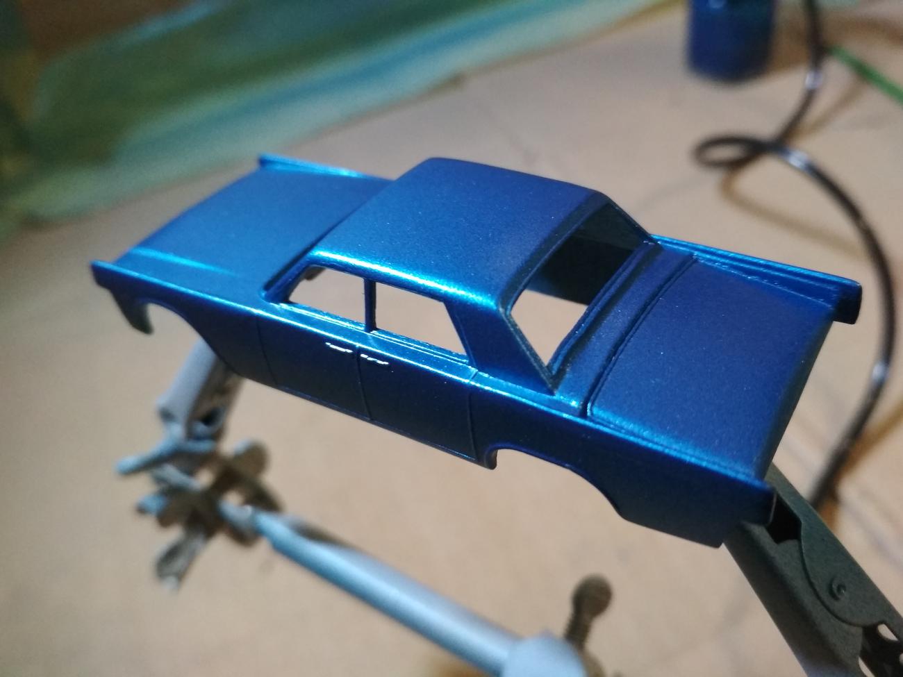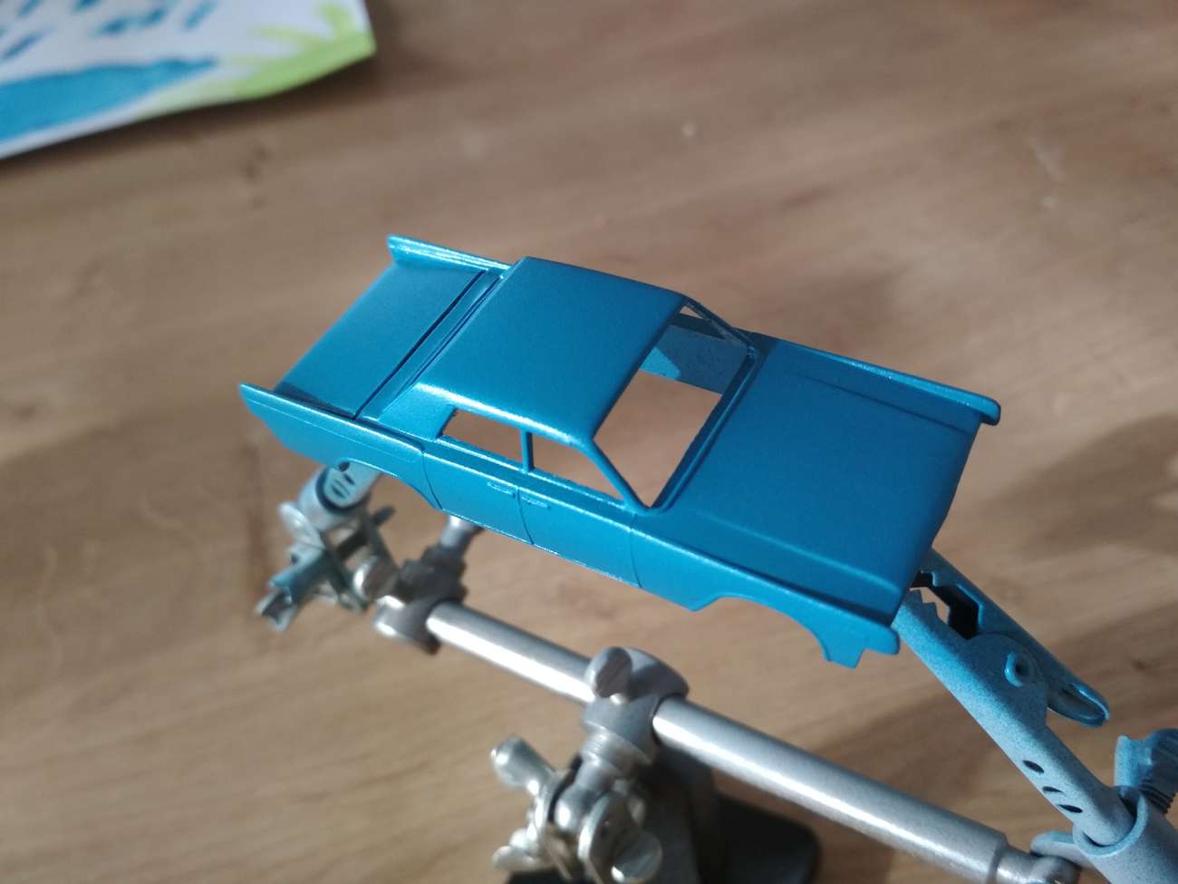 Minule jsem skončil tím, že karoserie je v laku, a jsou na ní domalované neodpovídající prvky – přední blinkry, které se na autě v tu dobu nevyskytovaly, a zadní světla, která také nebyla správně. Auto jednoznačně ukazuje na model, který měl přední blinkry v nárazníku, a zadní na ploutvích, orámované chromovým rámečkem. Znamenalo to jediné – odbarvovač.
