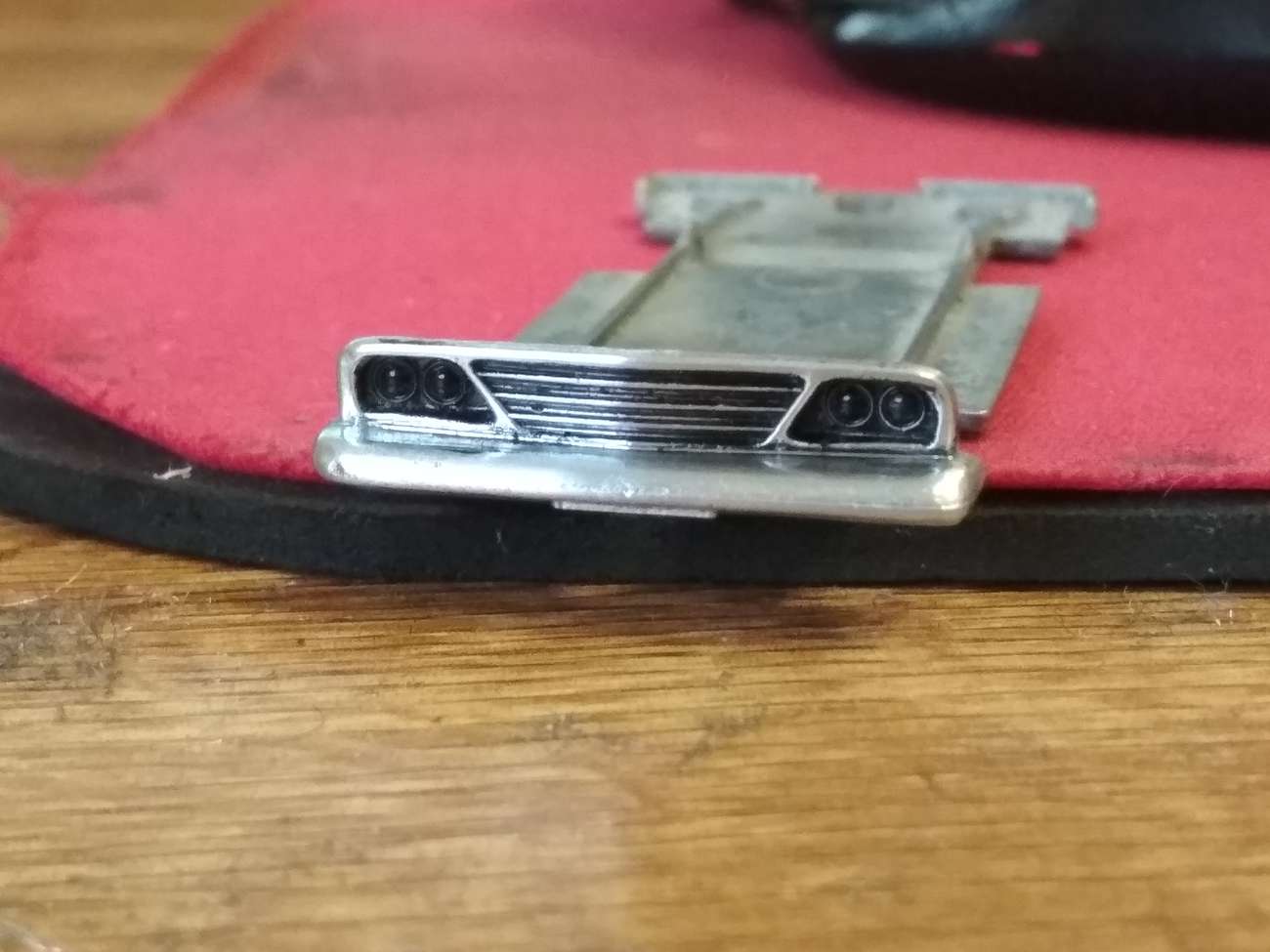 Rozborka proběhla tentokrát standardním způsobem, odvrtat oba pivoty, a model rozlousknout. Osy zbavit koleček, a podvozek celý potopit do octovo-solné lázně. Koupal se něco přes hodinu, poté jsem ho odrbal ocelovou vlnou, chladič přetřel černou na malém štětečku, a očistil ocelovkou nataženou na prst – takto se vlna nedostala do drážek chladiče, a výsledný dojem je chromovaná lesklá maska s čímsi tmavým na pozadí….u mě dobrý. Světla jsou zvýrazněna stříbrným Sharpie.