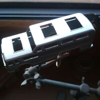 Barva je Tamiya X-11 – chrome silver, jsem z ní nadšený, dobře se s ní pracuje, a výsledek je fakt krásnej, není to chrom, ale má k němu docela blízko – leskne se jak psí kulky :-) S detaily jsem si tentokrát nehrál, model je stejně velký, jako Lincoln (moje prvotina), to znamená měřítko ještě výrazně zmenšené, a jakýkoliv pokus o blinkry atd. by nevypadal přirozeně – udělal jsem jen červenou ťupku pro zadní světla, a to je tentokrát vše.