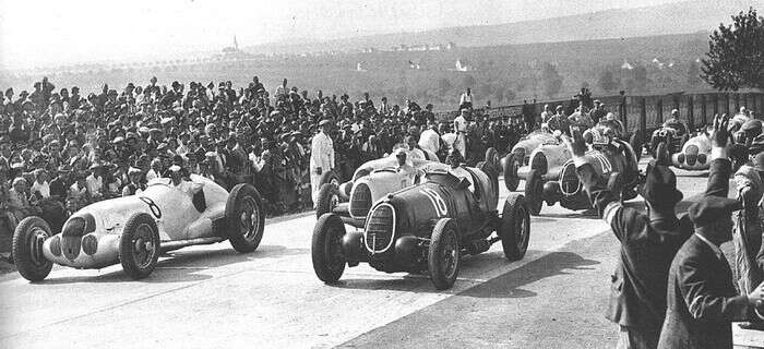 Start závodu v roce 1935, Stuck (4), Varzi (6), Rosemeyer (8).
