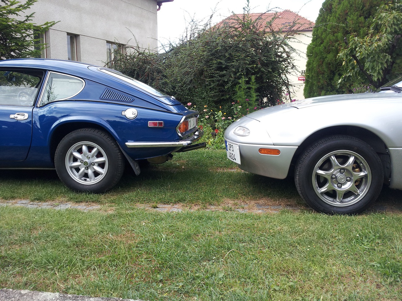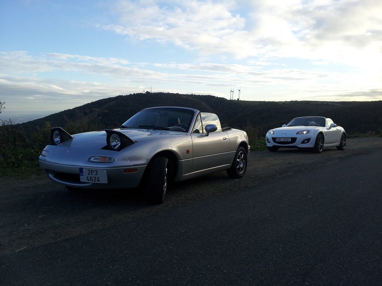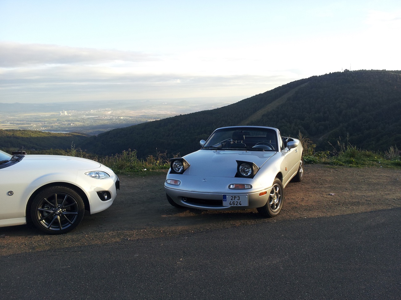 Dva roadstery, sluncem prozářenené podzimní odpoledne a krásný kus krušnohorského asfaltu. Co víc si přát. Snad jen ženu, co nechce zatáhnout vinilovou střechu, jelikož už je trochu zima. Všichni asi známe heslo „Všechno špatně, zpátky na stromy“. A přiznám se, že jsem poslední dobou ve výrazném psychickém rozpoložení toto heslo používat na ledaccos. Dokonce bych chtěl bojovat za návrat normálního tlačítkového telefonu. Moment, ještě přece jen nejsem důchodce, ale proč se obklopujeme v životě tolika nesmysly ? Nestačí nám snad jen jedna vynilová střecha nad hlavou, dvouvačková šestnáctistovka, která startuje na otočení klíčku teplá i studená a pohon zadní nápravy ? Mě tak nějak ano, stačí.