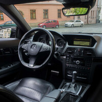 Tento konkrétní kousek má pod kapotou benzinový šestiválec, spojený s automatickou převodovkou, který dává vozu dostatečnou dynamiku. To je podle mě pro kabriolet takového ražení jediná přijatelná varianta, i když verze s naftovým motorem bývá volbou rozumu, sem dle mého názoru nepatří. Vůz dále zdobí krásná AMG kola, sportovní sedadla s dofukem a tříramenný sportovní volant. Nenechte se ovšem zmást, ke sportování Vás auto rozhodně pobízet nebude. Více mu sedne klidnější tempo než lámání rychlostních limitů a řezání zatáček. Vůz má sice tvrdší tlumiče než standartní Ečko, ale díky otevřené karoserii a pouze dostatečnému výkonu to žádný závodník není. Nakonec zvukový projev vozu je spíš nenápadný. To že máte pod kapotou šestiválec poznáte až při větším sešlápnutí plynu, do té doby se jeví spíš kultivovaně a nikterak Vás neruší. Ovládání elektrické střechy je koncert, který podle mého ale trvá moc dlouho. Lze ji sice ovládat i v nízkých rychlostech, což je ale v běžném provozu nedostatečné. Je tedy na Vás, zda to zatáhnete při prvním mráčku na nebi, nebo budete riskovat zmoknutí, protože ve chvíli, kdy začne pršet zrovna není kde zastavit. To platí i při manipulaci na semaforu. Několikrát se mi stalo, že interval červené prostě nestačil a netrpělivý řidič za mnou neměl pro mé počínání zrovna pochopení. A má znepokojivá zjištění nejsou zdaleka u konce. Při četných pochůzkách ve městě máte tendenci nechávat auto na parkovišti otevřené. Přece jen je otrava několikrát denně při každém přejíždění střechu neustále stahovat a natahovat. Vyřešil jsem částečně tím, že vytáhnu všechna okna a auto zamknu. Pokud by nějaký nenechavec vyloženě chtěl prohledat přihrádky, musel by do vozu skočit zadem přes víko kufru. Je důležité nenechávat v tu chvíli viditelně věci na sedadlech a za nimi, především bundy a tašky, které lákají nejvíc. Cennosti si musíte zamknout do kufru, nebo krkolomným způsobem vyndat z klíčku klíček, kterým uzamknete přihrádku před spolujezdcem. Je to otrava. Divím se, že u kabrioletů nepřišli s řešením zajištění veškerých přihrádek včetně loketní opěrky při uzamčení vozu. Je mi jasné, že budete oponovat tím, že v některých zemích se auta ani nezamykají a podobný prvek by byl zbytečný. Ale my žijeme v Čechách a třeba jen ukradené sluneční brýle z otevřeného auta zamrzí. Jsem pro zavedení tzv. „Czech paket“, který by si do výbavy mohli osvojit všichni výrobci automobilů. :-D Posledním velkým nepřítelem milovníků nebe nad hlavou jsou ptáci. A nejvíce holub. Tato opeřená městská krysa se mi nejednou podepsala na právě umytém autě a co teprve když ho zaparkujete a necháte nahoře bez. S tím souvisí poslední dilema při pořízení letního povozu a to, jaká sedadla zvolit. Ta kožená se určitě lépe udržují, případné nečistoty odstraníte hadrem a auto s nimi lépe vypadá. Někteří je odmítají se slovy, že látková sedadla po zanechání na slunci nepálí do zad, ale s odvětráváním, kterým tento Mercedes disponoval, je po problému. Naopak si myslím, že udržet látková sedadla v otevřeném voze pěkná je složitější. Ať už se jedná o nečistoty, zmiňované ptactvo nebo nečekanou průtrž mračen.