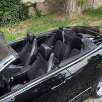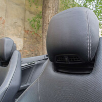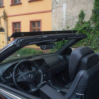 A jak se vlastně s takovým autem žije? S trochou kompromisů se dá jezdit celý rok, a proto jsem si vybral pro test právě tento Mercedes. Je to dle mého názoru totiž jeden z mála kabrioletů, se kterým můžete celý rok zvládnout i v našich končinách, a to i když se jedná o vůz s plátěnou střechou. Němci si dali na tomto modelu záležet a celoroční užívání bylo jistě nejednou tématem na všemožných poradách. Odhlučnění střechy a její těsnost je totiž příkladná. Při vysokých rychlostech je akustický komfort na vysoké úrovni, a dokonce ani návštěva mycí linky není problém. K tomu všemu přidává Mercedes jednu zajímavou položku výbavy, která Vám zajistí mnohem delší sezonu se staženou střechou. Ano, zasvěcení již vědí, jedná se tzv. ofuk krku teplým vzduchem, což ve Stuttgartu honosně nazývají „Air scarf“. Tím u mě tento model vítězí, protože když vytáhnete okna nahoru, zapnete vyhřívání sedadel, topení a tuto „fíčuru“, můžete bez střechy jezdit i v zimě, když jsou teploty kolem nuly. Samozřejmostí je i malý a velký „větrolam“, který zamezí průvanu ve voze a elektricky výsuvná lišta na rámu čelního okna, která posílá většinu vzduchu za vůz (viz. foto). To celé je tak dokonale vymyšlené, že máte nutkání autem jezdit celý rok. Samozřejmě život s cabriem má i své temné stránky. Tepelný komfort v zimních měsících Vám dá velice rychle najevo, že střecha je pouze plátěná. Za jízdy to samozřejmě nepoznáte, ale po odstavení interiér rychleji chladne, což může po čase uživatele notně otravovat. Další kompromis je zavazadlový prostor. Pokud máte střechu nahoře, není to tak zlé a běžnému ježdění a vyřizování dostačuje. Problém začne ve chvíli, kdy si chcete vychutnat nebe nad hlavou a zároveň vézt nějakou bagáž. Jelikož je vůz čtyřmístný a na zadních sedadlech se dá zvládnout cesta více než pár kilometrů, evokuje ve Vás auto dokonalého společníka na letní dovolenou s kamarády. Realita je ovšem taková, že když stáhnete střechu, na zavazadla místa moc nezbývá a Vy musíte buď kufr, nebo golfový bag strčit pod větrolam na zadní sedadla. Najednou jste rádi, že odvezete kufry pro dva a další spolujezdce vezmete tak maximálně na crusing po městě. Ta možnost tu ale stále je, na rozdíl od roadsteru.