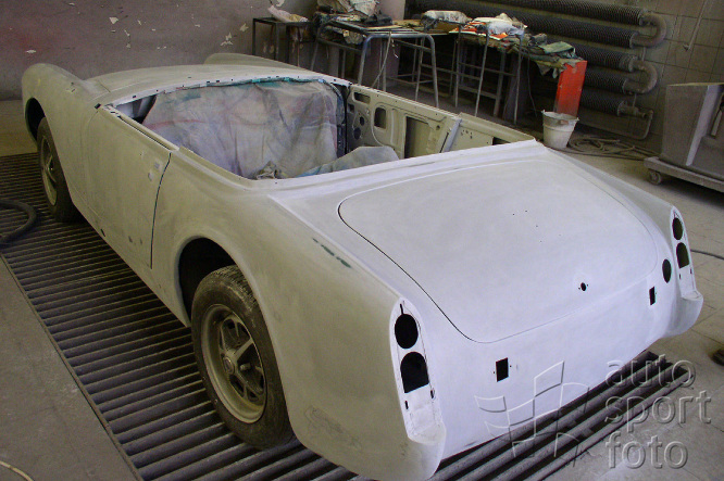 Túto prácu som chcel zveriť niekomu kto má potrebné skúsenosti, dobre pozná danú techniku a hlavne má trpezlivosť a potrebný cit pre dotiahnutie celkového výsledku renovácie. Moju dôveru mal jediný človek v dostupnom okolí, môj dlhoročný priateľ pán Viliam Gážik z Nižnej pri Piešťanoch. Spoločne so synom Romanom sa už dlhé roky venujú vozidlám AUSTIN MINI, s ktorými je moj MG Midget technicky v príbuzenskom pomere.