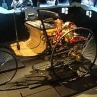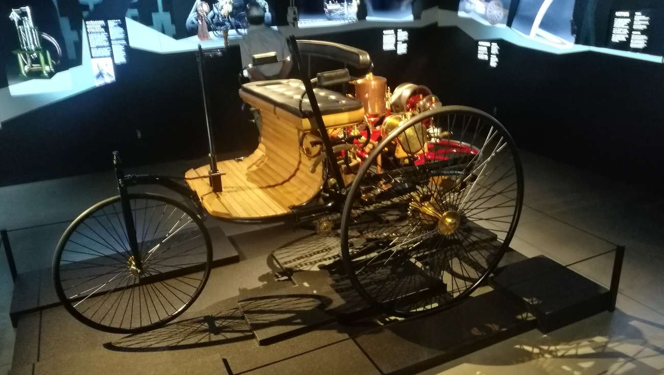 A tu je replika prvého auta na svete, Benzovej trojkolky.