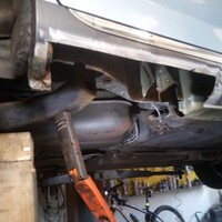 Dále jsem objednal motorek systému VIS. Systém VIS jsou mnoha výrobci používáné klapky v sání motoru. Motorek, který je měl ovládat nefungoval, takže auto bylo v nízkých otáčkách zcela zdechlé. Ne že by z něj po výměně byla raketa… Následovala servopumpa, pak výměna shnilého výfuku. Když bylo auto na zvedáku, tak můj mechanik (svatý to člověk) zjistil, že pružina vlevo vzadu je ulomená a rameno shnilé skrz naskrz. Vše vyměněno a následovalo vyvaření shnilého prahu.