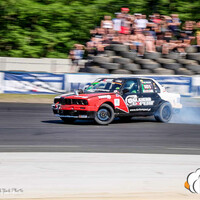 Ale abych se vrátil zpět na Sosnovou – než se jeden naděje, a nebo vystojí frontu na klobásu, už se rozjíždějí tréninky pro skupinu Pro. Skupina Pro zaručuje to nejlepší, co člověk může na české scéně vidět. Závodní speciály s výkony kolem 800 koní a ne zřídka 1 000Nm točivého momentu. V ten moment jsou však tribuny v Sosnové plné! Možná bych řekl spíše přeplněné! Lidé stojí všude podél trati (tam, kde mohou) i ve více řadách, auta parkují již mimo areál, jelikož prostě Sosnová kapacitně nestíhá. Z toho co jsem viděl, usuzuji, že některé motoristické sporty prostě táhnou více. Zřejmě je to tím, že divák v Sosnové vidí trať z tribuny celou, nebo že by tou samotnou akcí (tedy driftem) a nebo tím všudypřítomným sluníčkem?