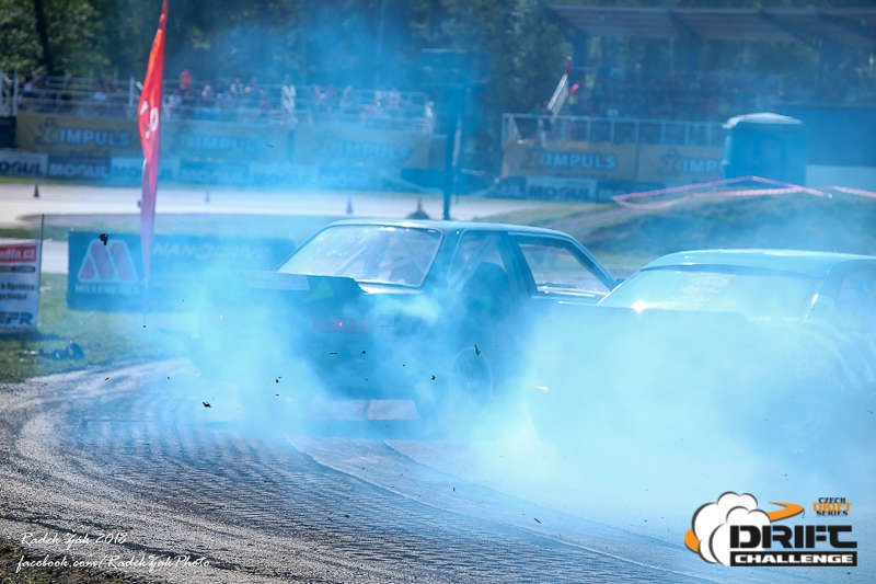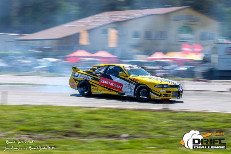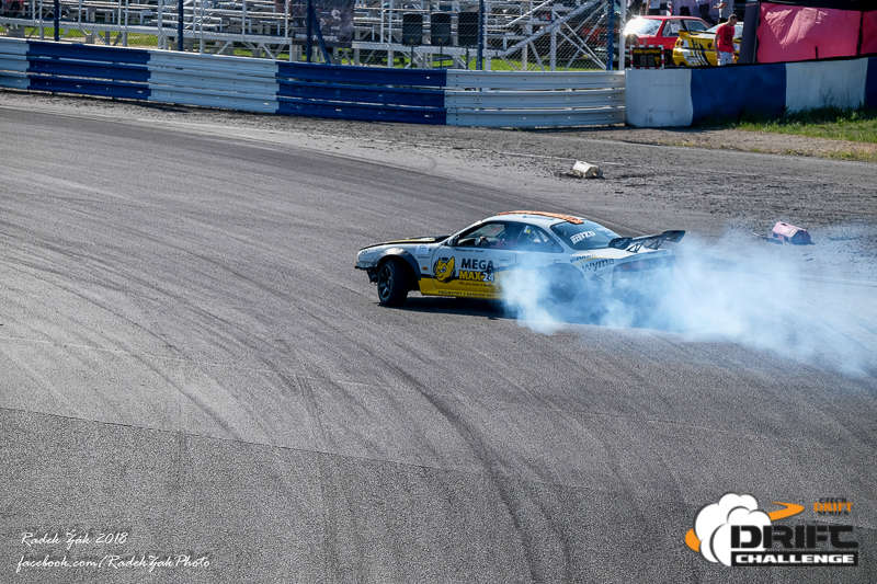 Dorážím na autodrom lehce po 9h a už se nestačím divit, parkoviště hned vedle depa je již plné a tak musím parkovat už na šotolinovém okruhu. Slunce pere, tribuny se začínají plnit a komentátoři zdatně komentují aktuální dění jak pro diváky v Sosnové, tak pro diváky u obrazovek – CDS totiž vysílá na YT livestream z každého závodu. Já mám chvíli na rozkoukání, na nastavení všemožných věcí na tom moderním přístroji na fotky a už se pomalu rozjíždí battly skupiny Semi-pro TOP16. No, pomalu… Nástřel do první zatáčky dávají jezdci v cca 70-90km/h (skupina Pro až 130km/h) a jsme tu na driftech, takže jak jinak než bokem!