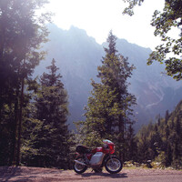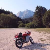 Poměrně slušná nálož kilometrů prvního dne měla zajistit velkou kilometrovou rezervu pro den druhý. Protože to, co na mě čekalo si zasloužilo nespěchat. Slovinsko jako takový má velkou výhodu, že vypadá jako lehce ošuntělejší Rakousko, ale nejsou v něm Rakušáci a hlavně jejich nutkavá touha kontrolovat rychlost. Ne, že by to na Jawě byl velký problém, maximálku má oficiálně 130 km/h, ač když se poskládáte za tu krásnou kapotáž, že si loktama šimráte kolena, tak s drobnou pomocí gravitace se dá jet i 160 km/h. Nic co chcete dobrovolně podstupovat, ale dobrý vědět když potřebujete tu a tam předjíždět. Ovšem Triglavský národní park hraje na úplně jinou notu. Vyjíždím už okolo půl osmé ráno, jelikož nemůžu dospat. Navíc je čas udělat drobnou údržbu, máznout řetěz, zkontrolovat olej a dotáhnout pár z těch blbě přístupných šroubů, co drží kapotáž a tak rádi chrastí. Nicméně malá rozcvička a lekce vymýšlení nových spojení sprostých slov docela rozbystří mysl před celým dnem ježdění. Sice mi ranní rosa zničila itinerář na druhý den, protože jsem idiot a přilepil jsem to den předem, ale přes Triglavský národní park vedou v podstatě jen dvě cesty skrz, jedna podél úpatí hor připojující se od provařeného jezera Bled, kde se to podle informací rojilo zmíněnými harleyisti a nebo druhá cesta řekněme vysokohorské charakteru šplhající až do 1600 metrů nad mořem. Pak je tu ještě možnost třetí a asi nejintezivnější a nejvíce připomínající klasické alpské průsmyky směrem k vrcholu Mangrt. To je ale „jednosměrka”, navíc ústící z italské strany. Takže zlatá střední cesta se ukázal být ideální i vzhledem k tomu, že jsem se potřeboval pohybovat „vpřed“ abych ještě ten den stačil dojet do chorvatského Zadaru. Takže tahle krásná jednosměrka na mě čeká někdy příště. Ne, že bych se i tak o něco ochudil. Po ranním krátkém zahřívacím přejezdu z Mojstrany do Krajnské Gory, kde se ke mně připojuje kamarád na krásné Kawasaki Zephyr, se z rovinatého údolí vystřelí ta nejzatočenější a nejpříkřejší silnice po který jsem asi kdy jel. Do toho se přidává ještě poměrně extrémní náklon samotných zatáček a připadáte si jako v generátoru náhodných silnic, kdy někdo dal všechny hodnoty na max. Jednička a dvojka jsou jediný kvalty, který přichází v úvahu. Na každém vrcholu zatáčky je značka s nadmořskou výškou a ty čísla utíkají v nesmyslném tempu. Jedna krásnější zatáčka za druhou se překlápí a do toho se tu a tam objeví průhled jak z Pána prstenu. V ranním světle doopravdy impozantní. Každých několik set metrů sesedám z motorky a musím to fotit a hlavně koukat s otevřenou pusou. Do toho na jednom parkovišti během focení potkáváme sténající dodávku plnou Francouzů, kteří tak tak vyjeli z posledního vracáku. Vystupuje jeden mladík a divokou gestikulací zároveň popohání své spolucestující aby ho následovali a mává na mě s tázavě se smějícím obličejem. Silně francouzsky rezonující angličtinou se vyptává, co to vůbec je. K mému údivu zná značku Jawa a říká mi, že ve Francii se o jawě říká, že sice není nejrychlejší ale dojede nejdál. Spouštím nahrané divadýlko, tentokrát v angličtině a s přepočtem ceny na eura. Mezitím okolo jedoucí cyklista, co ví, že pokud zastaví, tak už to bude naposled pohotově vytahuje telefon a fotí si za jízdy tuhle červenou krasavici. Zastavil jsem asi na pět minut a zase se z toho stává cirkus. Kamarád upozorněn, že se to bude dít jen kroutí hlavou a směje se. Dělám pár pěkných snímků a pokračujeme dál. Teď už je cesta čistočistá horská stezka s nebezpečně vydlážděnými vracáky, do kterých tu a tam vejde kráva dostatečně ostřílená aby jí nějaký provoz vůbec nezajímal. Postupně začíná ubývat zeleň a dostáváme se do výšin vskutku dolomitických kulis. Projíždíme okolo mohyl vyskládaných z kamínků až na nejvyšší bod této silnice, ležící o celých 7,7 metrů výše než nejvyšší bod České republiky. Poněkud pregnantně pojmenovaný Vršič. Ovšem co brzdy na ten následující sešup dolů?