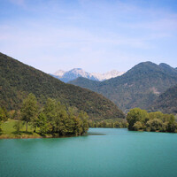 Další úsek na město Tolmin se zdá být na mapě jen další rychlý okreskový přesun ne nepodobný těm z předchozího dne. Jenže realita je úplně jiná. Do skály vytesaná relativně široká silnice má znatelný pozitivní náklon do zatáček a ač vlastně není chvíli rovná, tak má mírný poloměr zatáček, což z ní dělá velice příjemně svižný přesun. Mezi stromy prokoukává obrovské údolí, kterým je vidět několik desítek kilometrů do dálky. Od kochaček, ale odrazují výhružné značky s poměrně detailním výtvarným zpracováním lowsideru. Kde ale úplně ztratím pozornost, to je vodní nádrž ve městě Most na Soči, kde zmíněnou řekou akumuluje nádrž. Tyrkysově modrá voda úplně svítí pod světlou siluetou vzdáleného Triglavu a aby to nebyl moc malý kýč, tak po hladině projíždí dřevěná výletní loď, kterou sleduji ze starobylé kamenné konstrukce břehu. Jak je možné mít tolik různých superfotogenických krajin na tak malém prostoru, to mi hlava nebere. V ten moment se kolega Zephyr odděluje směrem na Ljublaň a dostávám dost vágní popis cesty dál. Následující trasa je proto pro mě trochu tajemství i když se ji snažím teď rekonstruovat od stolu, ale po vcelku hezké „jedničkové“ silnici se dostávám na dohled italské hranice ve městě Nová Gorica, odkud se stáčím směrem na Rijeku a zanedlouho přejíždím chorvatskou hranici. Připadá mi jako bych jel snad tři dny podle toho kolika různými prostředími jsem za těch několik desítek kilometrů projel. Slovinsko doopravdy předčilo moje očekávání. Skvělá příroda, skvělé silnice, milý lidé a rozumné množství turistů. Fakt stojí za to si udělat den zajížďku po cestě do Chorvatského letoviska a užít si tuhle krásnou zemičku.