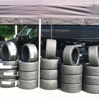 Chvíli se rozkoukávám, slunko peče a jdu do kraťasů. Ostatní posádky přezouvaní na slicky a semislicky. Chvíli váhávě koukám na nebe a na Yokohamy. Moc se mi do těch slicků nechce. Posledně když byly obuté jsem se kutálel. Nemám na výběr. Je sucho, teplo, a jestli nechci jezdit až vzadu, tak musí na auto. Místo výletu na rozpravu vytahuju vercajk. Rozprava je stejně venku a mluvit bude do rozhlasu. Výměna kol je na patnáct minut. Zaklínit, povolit šrouby, zvednou obě kola najednou na zvedáku (zvedám celou stranu před desku ze starého skejtu), vyvrtat šrouby, nasadit kolo, zavrtat, druhé kolo, pak druhá strana, utáhnout a hotovo.