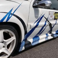 To jeho auto skoda ze jsem nevyfotil. To je stejne treba videt. Je celé olepene nálepkama ze závodů, ze uz pomalu není kam dávat další. Ale nepůsobí to tuzersky, protoze ty nálepky jsou nános času. Některé jsou tak staré, že jsou vyšisované od slunka. To auto je takove ošuntělé věkem a používáním, ale když se na něj zadíváš, tak zříš, ze je pekelně rychlé. Má takovou tu speciální auru...