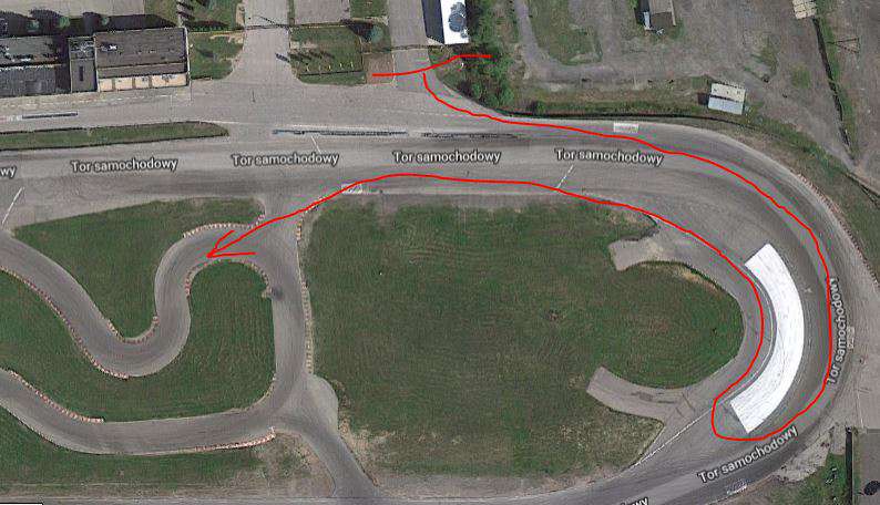 Start! Čento se rozeřve a slicky mě posílají kupředu. Působí to dobře, skoro nic jestě nenapršelo. Hned v první zatáčce se musí z dvojky v omezovači brzdit v oblouku. Jdu na to opatrně přece jen je už mokro. Brzdná dráha je i tak o něco delší, než jsem doufal. V hodně opatrné rychlosti utahuju do 180° vracáku, ale auto jede furt rovně! A saakra. Ty slicky to asi nedaj! Až napotřetí se to chytne a čento ryčí co to dá do dalšího úseku. Z rychlé trojky se brzdí do levé, která jde do ostré pravé. Na brzdách tam kopu dvojku točím volantem doleva a …