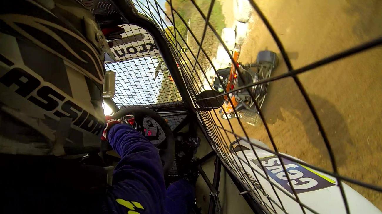V neděli v devět ráno byla druhá rozjížďka. Po startu jsem se dostal do kleští mezi dva soupeře. Jezdec na mé levé straně mě tlačil na buginu napravo, na kterou jsem najel a nakoplo mě to tak, že jsem šel 2,5x přes střechu, aniž bych se dotkl střechou země. Musím říct, že znám i lepší ranní rozcvičku.