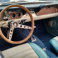 Půl roku se z něj dostával. Auto rozebrané do šroubku a na několika místech jižní Moravy a my byli před infarktem taky. :-) Ale naštěstí to dopadlo dobře. Pak se udělala kompletní renovace naprosto všeho. Karoserie se opískovala a vybrousila, auto dostalo nový lak, zrepasoval se motor a celý podvozek, veškeré šrouby se pozinkovaly, aby nerezly, prostě vznikalo z toho úplně nové auto. Když už jsme byli v téhle fázi rozebrané kostry plechu, tak jsme se rozhodli, že předěláme i ten černý interiér a místo něj jsme v USA nakoupili úplně nový, modrobílý, který dle našeho názoru lépe ladí s modrobílou karoserií a navíc v tzv. Pony Package, což byla luxusnější verze výbavy s vylisovanými Mustangy na opěradlech a dřevěnými doplňky interiéru.