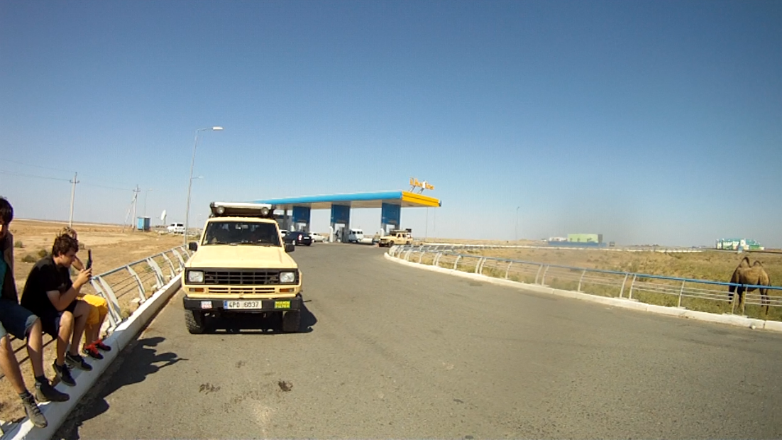 Kazachstán už je trochu jiný. Pokud se cestovatel drží pouze hlavního tahu na Uzbekistán, stále si bez problému vystačí se zcela běžným autem. Stejně by na tom měly být nejdůležitější tahy skrz tuto obrovskou zemi, nemůžu to však s jistotou potvrdit z vlastní zkušenosti, stejně jako informace že se aktuálně v zemi významně investuje do infrastruktury. Menší tahy už jsou ale skutečné peklo. Pojem vyjeté koleje nabývá zcela nového rozměru, výškové rozdíly 35+cm jsou zcela běžné. K tomu každou chvíli mohutné díry ražení toho nešťastného úseku na Ukrajině. Okraje cesty bývají většinou vysypané jemnou šotolinou a velmi často se nám vyplatilo jet raději po ní (a vířit oblaky prachu za sebou) než po cestě. My jsme jeli dvěma Nissany Patrol z roku 1985, a v případě našeho vozu s již horšími listovými pery a plně naloženým autem zažívali velmi časté rány nápravy o rám vozu, mozek mi proto nebyl schopný pobrat jak je fyzicky možné, že místní s běžnými automobily proletí kolem nás dvojnásobnou rychlostí a auto se jim nerozpadne ani neuskočí do škarpy.