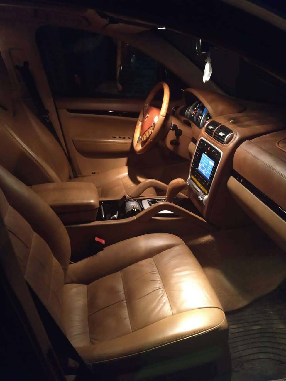 Asi nemá cenu říkat, že interiér je fajn místo k životu plné prvotřídních materiálů a vše perfektně slícované a nevydávající nežádoucí zvuky ani po letech. Krom vzhledově ne zrovna fancy ovladačů výhřevu sedadel snad z passatu b5 je vše naprosto samozřejmé, kdy klima udržuje požadovanou teplotu bez výkyvů a hučení (větrák ventilace má na sobě opravdu takový izolační plech) ovladače jsou tak nějak v místech, kde je čekáte a dosažitelné bez vykloubení ruky. Zákoutí, která se v jiných segmentech řeší stylem “na co kryt, tam se stejně nikdo dívat nebude” jsou tady potažená kůží, někdy doslova. Výbava je poplatná době vzniku, displej mezi budíky u verze cayenne s vypadá dost retro a třeba infotainment dnes nabídne lepší i škoda rapid ve střední výbavě. Na druhou stranu to, co tam je, je perfektní ukázka účelnosti a funkčnosti. Ano, ambietní osvětnění sice neumožňuje nastavit váš oblíbený odstín modré, což by mě mrzelo, kdyby v mých patnácti tohle auto koupili naši místo citroenu saxo se švihadly, ale nažloutlé světlo ladí s kůží v interiéru, tak jen nastavíte intenzitu a dál na to nešaháte. Tovární bose audio musím, co se týče přednesu, hodně chválit, je to moje první auto, kde jsem (krom konektivity) audio nijak neměl potřebu řešit, protože tady subwoofer do kufru dali už ve fabrice a vyrobili pro mě shamemobil ještě, než jsem měl řidičák.