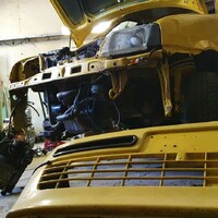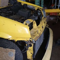 Po bouračce se auto dovezlo na dílnu jako vrak. Po analýze kamaráda fiatmastera Lukáše mi bylo řečeno že po vycvaknutí nárazového čidla motor běží a že co je pomačkané se narovná nebo vymění. Tak jo, den po bouračce jsem se vydal auto rozebrat, sundal jsem komplet předek a nechal to být (nevěděl jsem jak sundat rameno..:D) Pak par dni na to mi kluci poradili a rameno bylo dole.