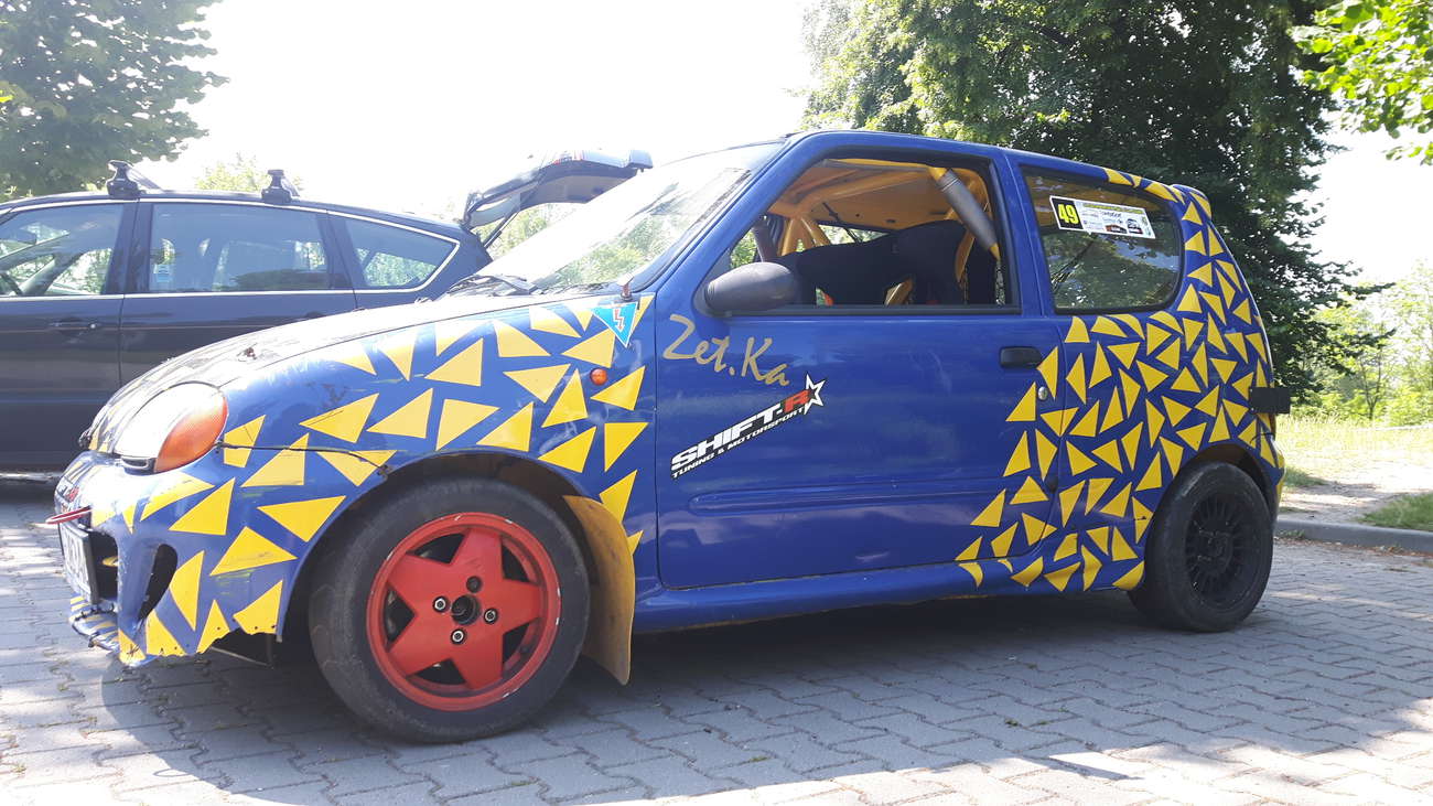 Start. “Strom Levá 1” řve strejda do mikrofonu. Hrrryyyccc za dva, hrrrryyyyy brzdaaa. Brzdit razantně ale s citem. V Seicentu neni ABS a hranice, kdy se kola zablokují je tenká i teď na asfaltu. Poslední dva metry i tak kloužem ve smyku a auto se natáčí do vracečky na zámkovou dlažbu, která vede na parkoviště. Hrrryyyyccc “Barel zleva”, snaží se přeřvat výfuk, za dva, hrrryyyy na prorostlé zatravňovací dlažbě je rychlejší to plynule objet, než dávat přes ručku. Udržet jemně trakci v oblouku plynem hrrryyy hrrrr hrrryyyy. “Levá 1 mezi stromy” hryyyyyycc za tři, hrrryyyy brzda brzda! Proklouzat zpátky po zámkové dlažbě a zahnout doleva. Kam dřív koukat? Mezi stromy nebo jak projet mezi krátery, které kolem křižování chodníků vyhloubily vozy přede mnou? Rána do podvozku. “Hrbol Levá 3” hrrryyyycc za dva, hrrryyyyyc za tři po tentokrát panelovém parkingu. Rána za ránou. Brzdit to něčeho hrozného. Nazvat hrbolem příčný hliněný kaňon, který býval trávníkem mezi parkovištěm a úzkou asfaltkou, je minimalistické. Prásk, hňáp, bech. Vyhrabat se na jedna po zanesené asfaltce srkz úzkou bránu. Hrrryyyyccc za dva, hrrryyyyyyy.