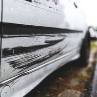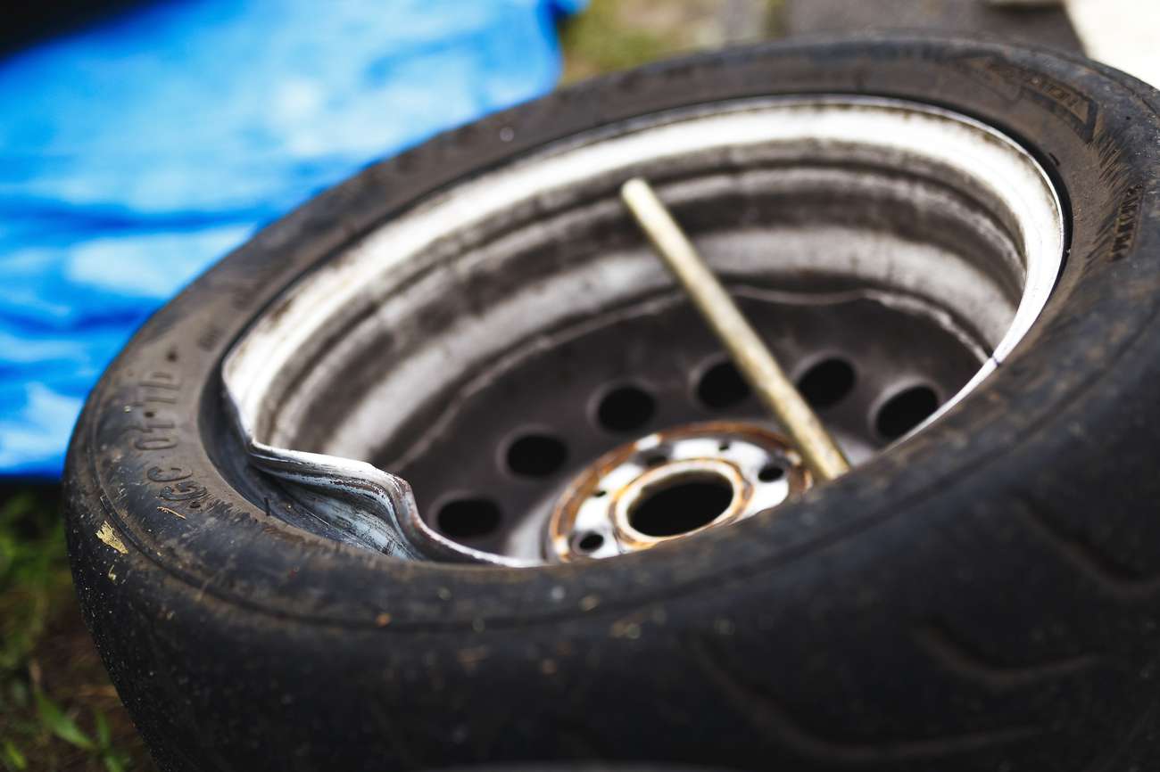 Přijedeme na servis a vidíme, že soused má sundaný přední nárazník. Ohnutá karoserie pod pravým světlem. Schytala to hlavně hliníková deska pod motorem. Prý taky najel do stojanu. Akorát evidentně víc než já. Deska je prohnutá tak, že místo aby těsně doléhala a chránila olejovou vanu, tak je do oblouku a 2 cm nad zemí. Měl jsem to vyfotit. Karoserie a deska šla narovnat kladivem. Ohnutý plechový ráfek dvěma kladivy. Jede se dál :)