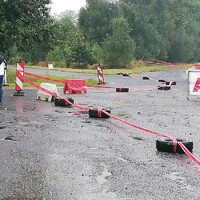 Dávám mu vercajk, zanadává a už se na to vrhá. Stan máme hotov během okamžiku – sousedi sami od sebe naběhli a pomohli nám to postavit. Teď se máme všichni kam schovat před lehkým deštěm. Lidi se fakt chodili i ptát, co že to je ten Fortelock co je napsaný na stanu a jestli jsou ty dlaždice pěnovka. Říkám že né, že to je na podlahu třeba do garáže. Ptaj se na posilku a říkám že to taky, že tomu nevadí, když na to spadne činka. Čento zatlačíme pod střechu. Mám sehnat vrták. Člověk fakt aby vozil celou dílnu. Na třetí zeptání mám vrták v ruce a Pawel provrtává podlahu. Zanedlouho už je skrz bohový dlouhý šroub s velkou podložkou a sedák je přišroubován přímo k podlaze. Odchytíme komisaře co je poblíž. Telefonuje tomu borcovi co byl na BK. Dělá to napínavé. Není tam totiž vložena žádná destička pro vystužení. Ta podlaha je samozřejmě měkká. Chvíli se domlouvají a nakonec, že pro tentokrát OK a že na další start to máme zrobit pořádně. Ufff!