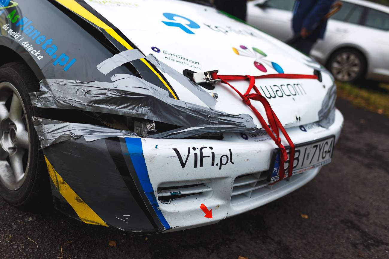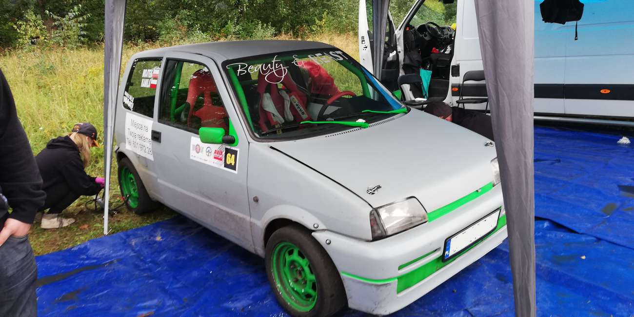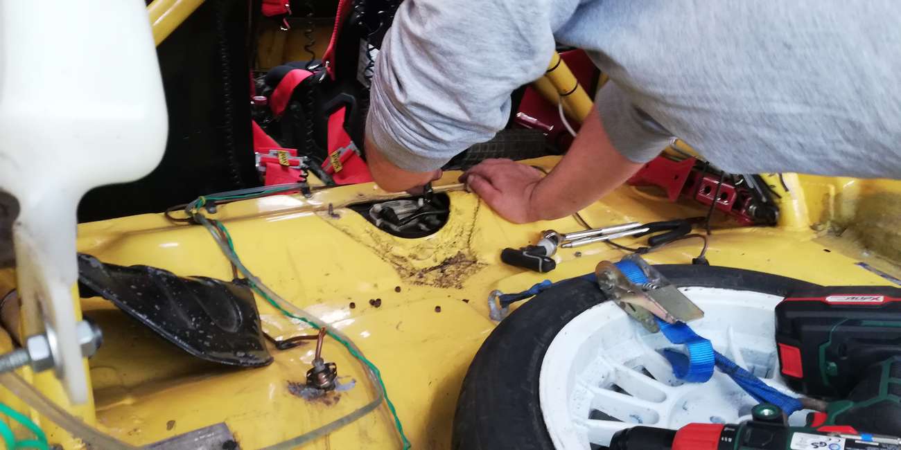 Hned jedu na BK (badanie kontrolne – technická kontrola), kde komisař na místní poměrz velmi důsledně proklepne auto. Zjistí, že sedačka řidiče se malinko viklá. Jedno uchycení sedačky řidiče je ulomené. WTF! Plech karoserie, kde byla našroubovaná lišta sedačky je vylomený. No to jsme v dupě. Na start nás nepustí. Musí být opravené a zpevněné jinak mě finito.