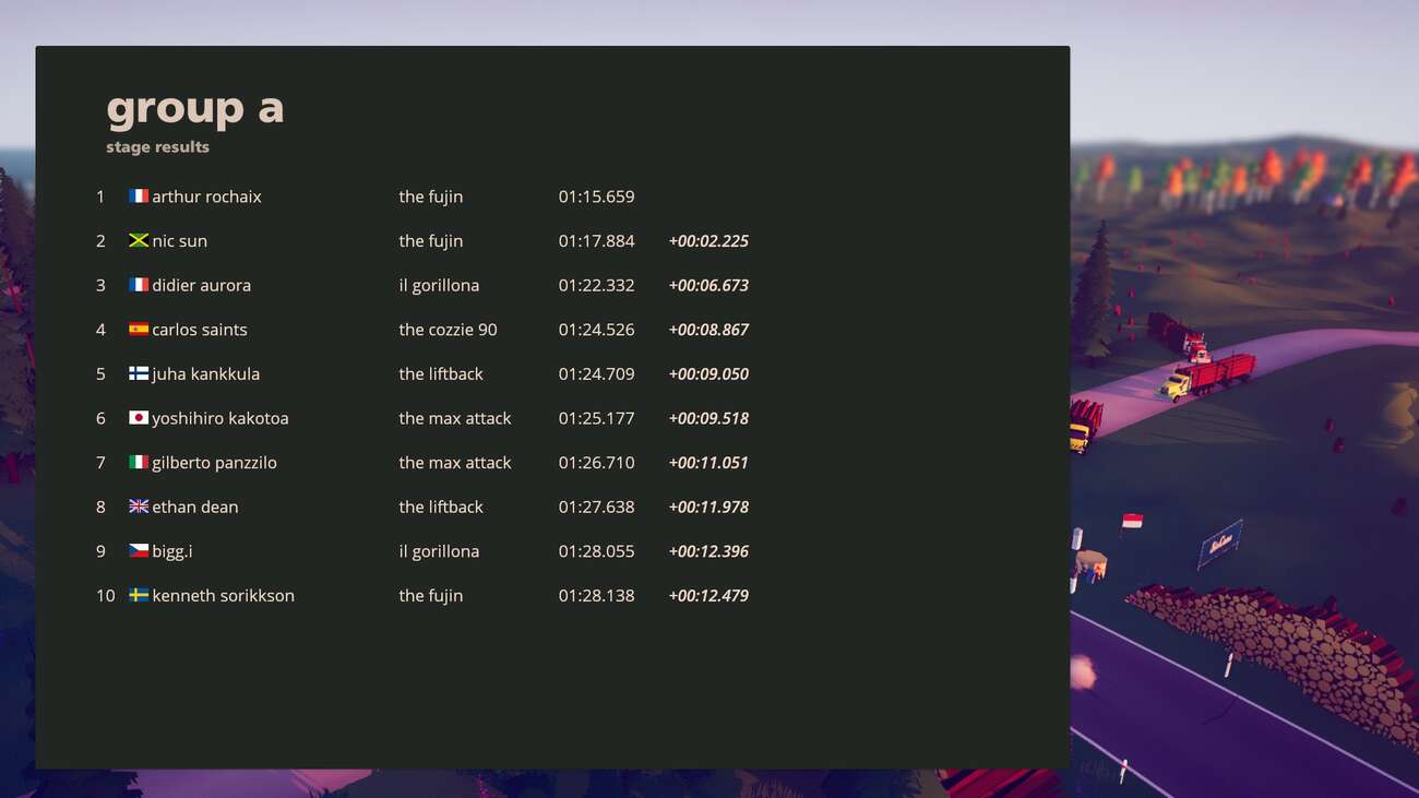 Co se mi doopravdy líbilo, tak zařazení méně známých kousků, které se v jiných hrách nikdy neobjevily. Potěší třeba přítomnost Škody 200 RS! Samozřejmě bych mohl vznést námitku, že některé legendární vozy chybí, ale tak to prostě je, všecko mít nemůžeme. Osobně bych loboval za skupinu F2, krotit silné předokolky by mě hodně bavilo. Zpátky do „reality“ ke hře. V menu má každý auto krátký popisek, který obsahuje střípky reálných faktů o daném voze a zbytek je… pár trefných vtípků. Další srandičky si autoři připravily na podvozcích aut. Pokud Když se auto podaří otočit na střechu, každé má svůj #hashtag odkazující na něco spojené s tím konkrétním autem. Ještě doplním, že v rámci modů je možnost si pro auta stahovat uživateli vytvořené livreje.