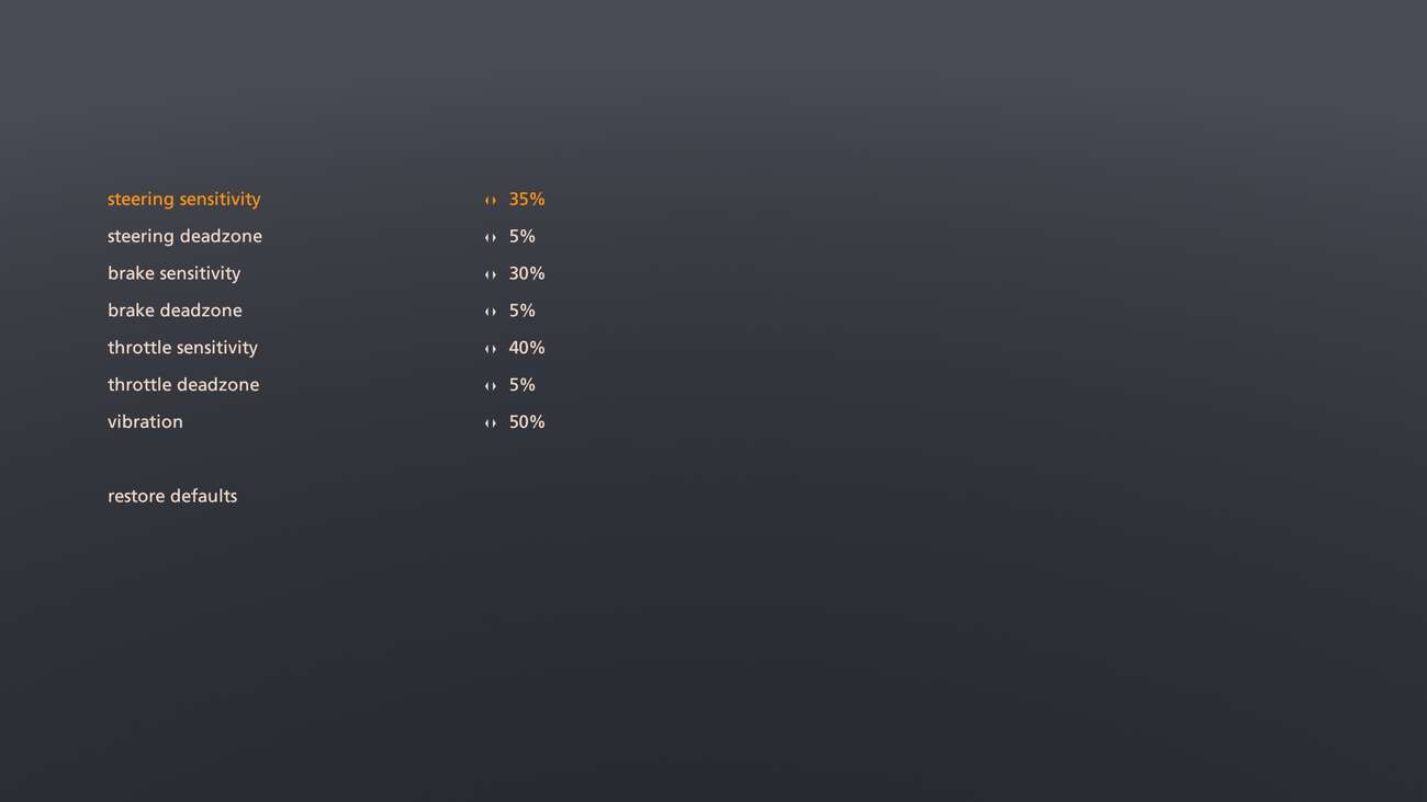S tou fyzikou jde ruku v ruce to, jak je hra zamýšlena. Míří především na hráče s klávesnicí či gamepadem. Dá se hrát i na volantu, ale FFB pro volant chybí. Já hrál na klávesnici a neměl jsem sebemenší problém hru dokončit na nejtěžší obtížnost. Avšak musím přiznat, že jsem musel odzkoušet různé kombinace v nastavení citlivosti. Je možnost nastavit celkovou citlivost řízení, jak moc je citlivé kontra, mrtvé zóny a taky asistenty (ABS, pomocník stability řízení, kontrola trakce). Já měl vše vypnuto, krom ABS, to bylo na 10%.