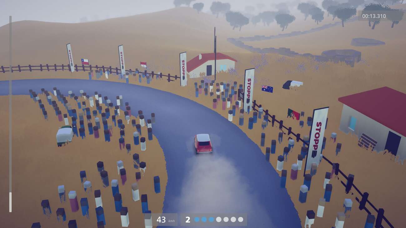Rozpis není. Spolujezdec není. Ukazatele nejsou. Cože? Jak je možné udělat rally hru, kde chybí stěžejní element. Vlastně ani ne, nechybí z hlediska hraní. Skutečně zde není žádný navigátor ani ikonky značící trať. Tohle je vyřešeno velice elegantně pomocí dostupných kamer. Nenajdeme tu pohled z kokpitu, z nárazníku nebo přímo za autem. Místo toho máme kamery, které jsou spíše za a nad autem, v různých vzdálenostech. Díky tomuto řešení vidíme dostatečný kus trati před sebou, vidíme na auto a taky můžeme „nerušeně“ poslouchat naprosto boží soundtrack. Geniální řešení, ikdyž pro mnohé je tohle prohřešek proti rally. Ikdyž… v minulosti se RAC rally jezdila taky jen „na oči“.