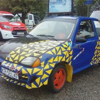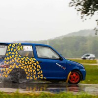 Těsně před lesem mě dohání jiné Seicento. Tyo to si dělá prdel, ze na mě na dvou minutách najel 30 sekund? Zpomalil jsem ať ho pustím před sebe a hodil blinkr. Pochopil jsem, že předjet mě nemůže. Do konce jsem to jel spíše opatrně. Pořádně si nepamatuju jak je udělaná trasa ke konci do kopce přes ten high speed les. Zašel jsem za ním později po jízdě. Ani mu nevadilo, že mě dojel. V takovém případě se jede zpátky na start a máš náhradní jízdu, takže je to spíše za odměnu ;) Obuto měl na R13 Pirelli s rozměrem 200 z formulí (víc o pneu ještě později). Na výsledcích po prvním kole byl o první jízde 1. ve třídě a 12tý celkově.
