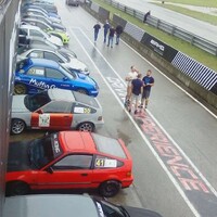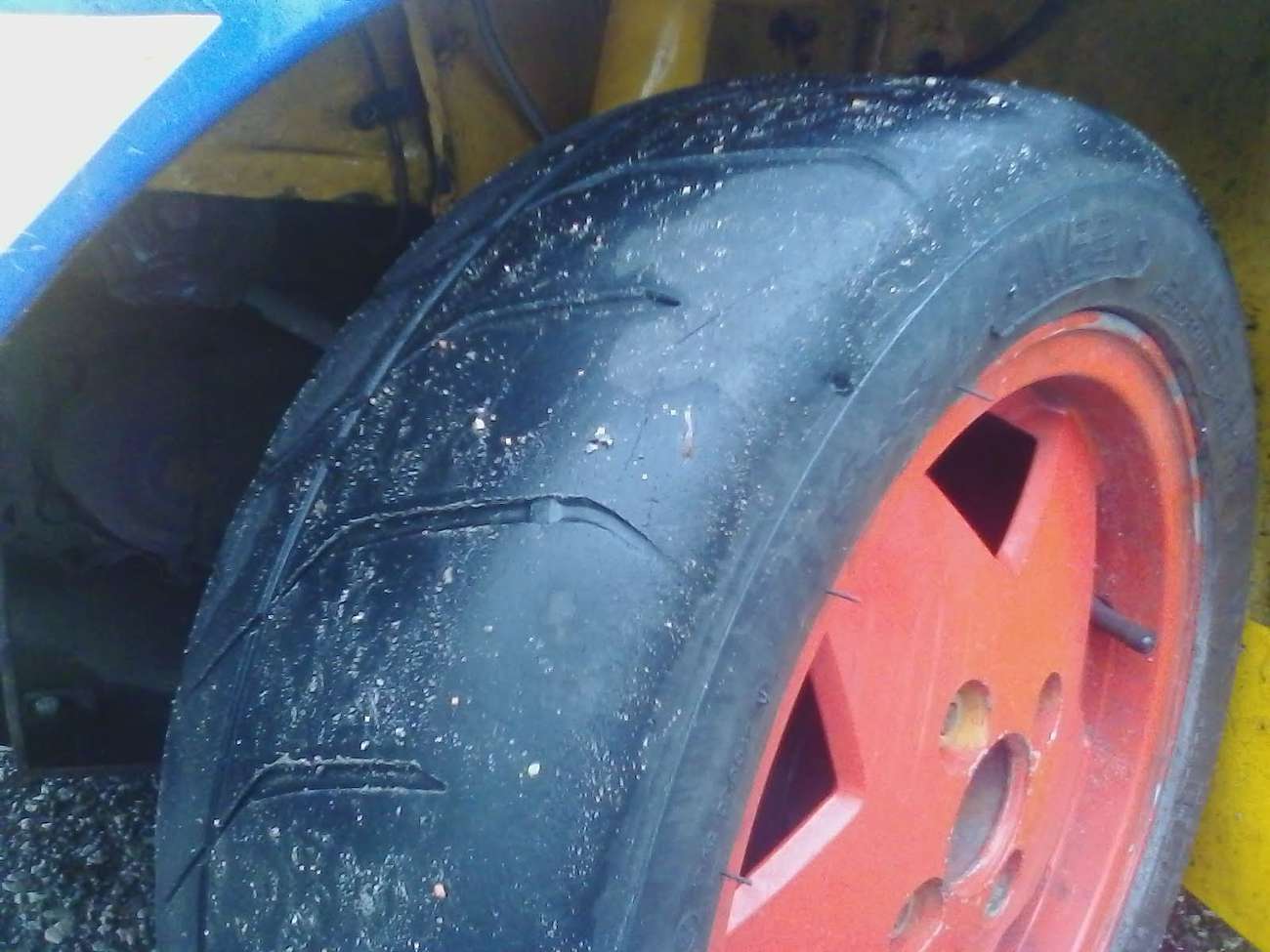 Využil jsem toho, že neprší a vydal se udělat pár fotek a pokecat. Dal jsem se do řeči s nějakým pánem, tak po šedesátce. Jezdí od jara ve vybrakovaném Cliu RS. Dal mi kontakt na firmu co mimo jiné vozí z německa jeté pneu ze seriálu formulí. Pirellky a Micheliny do vody na průměr disku 13, ale šířka 200 a za velmi rozumný peníz. Je k tomu třeba ještě 7 palcové disky. Za mokra je to pak hned úplně jinde. Všiml jsem si, že tam na podobných pneu jezdí skoro všichni napříč třídami. Tak ježíšku, dávám ti na seznam jedny prořezané a jedny slicky :)
