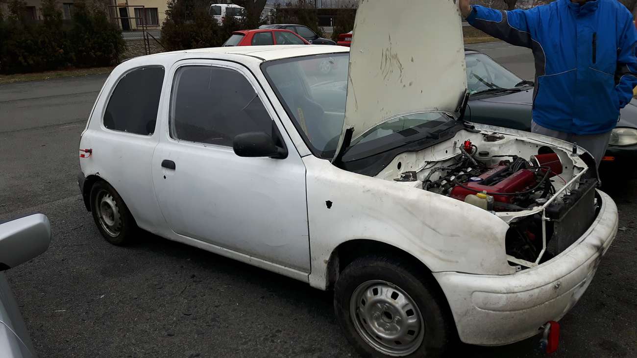 Rád bych krátce komentoval vítěze PlechCupu – Nissan Micra 2.0 16v obuté na 145 (nebo 165)? Rozložení váhy tipnu 80:20 :) Jak se taková věc asi ovládá? Vyšli jsme nahoru na tribunu ať to lépe vidíme. Při rozjezdu a vytí motoru za zvuku omezovače zůstáva na asfaltu 15 cm široká a 15 m dlouhá čára. Při brždění jinak než úplně rovně přichází divoký oversteer.