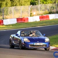 Tak jedu znova. Provoz už je doopravdy menší a po tom, co jsem v prvním kole vstřebal ty pekelná převýšení, zjišťuji, že už se vlastně docela dá jet „po paměti“ jak to znám z playstationu. Takže můžu zkusit malinko tempo. A zde přichází další velký poznatek. MR2, jakkoli je skvělá na malých tratích a i v Mostě se úplně neztratí, tak tady je těch 103kw opravdu zatraceně málo. Ještě v těch teplotách. Sice se mi podařilo ve Schwedenkreuz protnout 200km/h, ale všechny pasáže do kopce jsou jedno velké trápení. Např. pasáž od Bergwerku po Carusell je velmi rychlá, takže ji jedu pořád pod plným plynem, ale auto jede tak 160km/h, čtyřka řve v 6000ot/m ale už nezrychluji. Trvá to nekonečně dlouho a v tom vedru teploty všeho rychle stoupají, takže v dalších kolech tuto pasáž záměrně vypouštím, dávám šestku a stodvacítkou, vpravo a s blinkrem se pěkně dovezu až do Carusellu, kde zase jedu. Do Höhe Acht je to sice taky hodně do kopce, ale jsou tam alespoň zatáčky, takže si to člověk trochu užije. Pak už je to v podstatě nahoru dolů až do cíle, takže to už je zábava. S každým dalším kolem jsem si troufal víc a víc. Ne, opravdu jsem nejel žádnou tužku, ale celkem svižně už by se to nazvat dalo. Ale opravdu co se týká provozu, tak nejlepší čas na tyto večerní jízdy byl 18:30 – 19:30. To už byl provoz snesitelný.