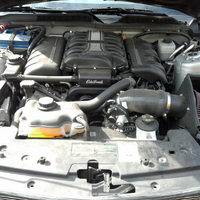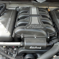 Auto teď vypadalo podle mých představ, jenže časem jsem si začal říkat, že by bylo fajn trochu zvednout výkon. Ne, že by těch 300 koní bylo málo, ale auto už na pohled vypadalo, že po nastartování žere malý děti, tak to chtělo výkon adekvátně vzhledu upravit. Říkal jsem si, že se nebudu pouštět do žádných větších akcí a vyměnil jsem jen kladky řemenic za odlehčené hliníkové a s jiným převodem, sací trakt se sportovním otevřeným filtrem sání a přeprogramoval řídící jednotku pomocí programátoru, který jsem si koupil v USA. Nový software řídící jednotky přímo na míru mi vytvořili ve firmě American Muscle z Pensylvánie. V koutku duše jsem ale stále toužil po mnohem rozsáhlejších výkonových úpravách a tak někdy po dvou letech vlastnictví Mustanga jsem si řekl, že je ten správný čas na montáž kompresoru. :-D Po mnoha a mnoha hodinách strávených na netu a probdělých nocích chatováním s Američany jsem se rozhodl pro zavedenou firmu Brenspeed z Indiany, kde jsem koupil celý kompresorový kit značky Edelbrock, model E-force. Edelbrock je pojmem mezi úpravci amerických aut. Tahle firma byla založená na začátku 30. let a dodnes má skvělé renomé. Od Brenspeedu jsem zakoupil výkonový balíček s označením Stage 1, který měl obsahovat kit na zvýšení výkonu na výsledných 560HP. Podle prodejce by auto s tímhle kitem mělo zrychlovat z 0-100 za 4 sec. a Vmax. by měla být přes 300km/h. Nikdy jsem žádné z těchhle hodnot neměřil, ale pravda je, že po montáži se z auta stalo naprosté monstrum, které nemělo absolutně žádný problém pálit gumy i v 60-ti kilometrové rychlosti. :-) Kit samozřejmě neobsahoval jen samotný kompresor Edelbrock, který měl mimochodem objem 2,3L. Dále byl v sadě kompletně nový chladící okruh s přídavným chladičem pod přední nárazník, větší vstřiky, větší škrtící klapka s novým sacím traktem s větším průměrem a s novým filtrem sání, nové kladky řemenic, přídavná řídící jednotka palivového systému, opět nové přeprogramování řídící jednotky motoru a kdo ví, co ještě. Už si to všechno ani nepamatuju. Byla toho plná paleta věcí. :-)