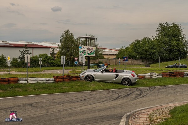 Opravili jsme škody, jak to jen šlo a zkontroloval jsem Harryho – 0:56:48! Mám to! Byl čas na paní Goldiesovou. Uklidnil jsem ji, že nic horšího už se nestane a ať si to užije sama bez spolujezdce. Už z věže u poslední šikany bylo vidět, že jede krásně čistě a kdyby ji nezdržovala cupová Felicie s řidičkou za volantem, mohlo to být ještě lepší. Po posledním stintu nám Harry ukázal neuvěřitelný čas 0:59:59! Oba cíle splněny a my mohli uspokojeni vyrazit k domovu (byť neplánovaně brzo). Na cestu jsme si ještě koupili posledního hambáče (sorryjako ale ten vepřovej už prostě nebyl tak dobrej) a plní dojmů a zážitků vyrazili k domovu. Já usnul snad během 10 minut, naštěstí už né za volantem. Ještě večer doma v posteli mi paní Goldiesová říká: „já ji pořád slyším, i když je tady takový ticho!“ ANO, i paní Goldiesová je lapená do spárů naší krásné holky, Toyoty MR2.