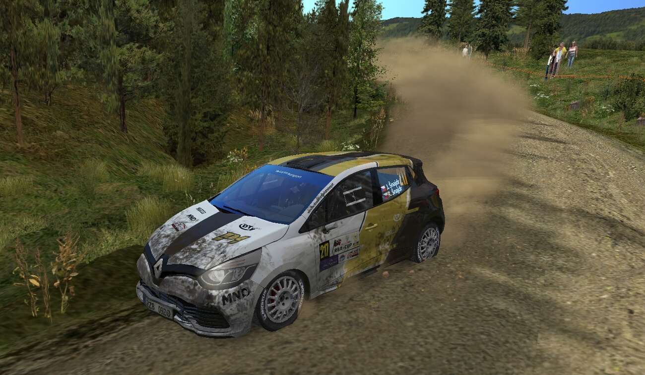 V RC3 jsem zvolil Renault Clio IV R3T, protože to byl jeden z nejmladších modelů. Jestli to byl dobrý tah, si nejsem úplně jist. Po přesednutí ze slabších aut RC4 je to Clio jako na steroidech. Okamžitě to protáčí kola, až překvapivě agilně jde do zatáček a hlavně je přetáčivé jako prase. Až na to protáčení kol snad i na trojku jsem se cítil jako doma v čentu :) To přetáčení se ukázalo jako tvrdý oříšek, protože jiný než skutečně jemný lift off a zacházení v rukavičkách znamená okamžitě zadkem ven. Na suchém asfaltu. Ta rychlost na monitoru zrádně klame. Na pedálu plynu jsem se musel naučit opravdu jemně dávkovat nejen rozjezd, ale hlavně to ubírání. S tím autem to byl neustálý boj, ale taky obrovská satisfakce, když rychlejší zatáčky projedete na té správné hraně. To je když cítíte, že ten zadek utíká, ale jen tak akorát aby se to nepřetočilo a zároveň to pomáhalo s rotací do zatáčky. To když se začne dařit je to blaho! (K tomu se ještě níže vrátím) Akorát to chce další měsíce spíše než týdny :D