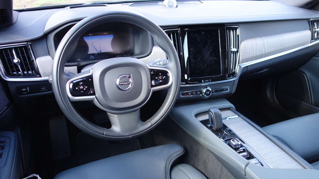 Začnu exteriérem. Přední část s LED denním svícením ve tvaru Thorova kladiva je tu s námi už hezkých pár let, ale stále to funguje a vypadá svěže. Přední maska s výrazným znakem a prohnutými lamelami je kolmá a zajišťuje ten správný sebevědomý výraz, který ale není přehnaně agresivní. Skoro pětimetrová délka (bez šesti centimetrů) pak znamená, že i přes dlouhou kapotu je v interiéru dostatek místa všemi směry. V kufru možná dokonce až nadbytek nebo jsem prostě zvyklý dosáhnout i na předměty zapadlé až k zadním sedadlům – tady si pro ně musím do toho kufru doslova vlézt. Tohle však v případě menšího množství zavazadel elegantně řeší přepážka, která se dá v půlce kufru otevřít. Výborný vynález. Zadní partie pak mají další typický znak Volva – vertikální svítilny, jejichž spodní části zde ale zasahuji i do víka kufru. Celý design je pak hezky čistý bez zbytečně rušících křivek a prolisů. Nejvýraznějším prvkem je tady ale přidání ochranných plastů kolem celého auta a zvýšení podvozku o 60 mm. Opticky to už tak velké auto ještě o kousek zvětšuje.