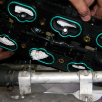 P.S. Tak jo… povedlo se. Po asi 3 hodinách práce jsou svíčky a všechny těsniva pod sáním vyměněna. Šrouby a svíčky při poslední výměně mazané nebyly, měl jsem obavy, ať něco neutrhnu. Při montáži spět jsem vše dotahoval momentovým klíčem podle hodnot ze servisního manuálu a závity namazal, takže 90 000 km bude klid. Neplánovaně se musela taky vyměnit jedna hadička, která vlivem stáří po odklopení sání praskla. (Jde přes ní chladící kapalina skrz škrtící klapku). No ten kdo to dělal někdy dávno naposled… musel být chlapák ! (Holandský). Vyměnil pouze 5 svíček (navíc jiné značky BOSCH) a těsniva nechal staré, podle opotřebení bylo jasné, že to nechal tak… Po naší práci máme jistotu, že je jak má být. pár fotek z dnešní práce je ve fotogalerii.