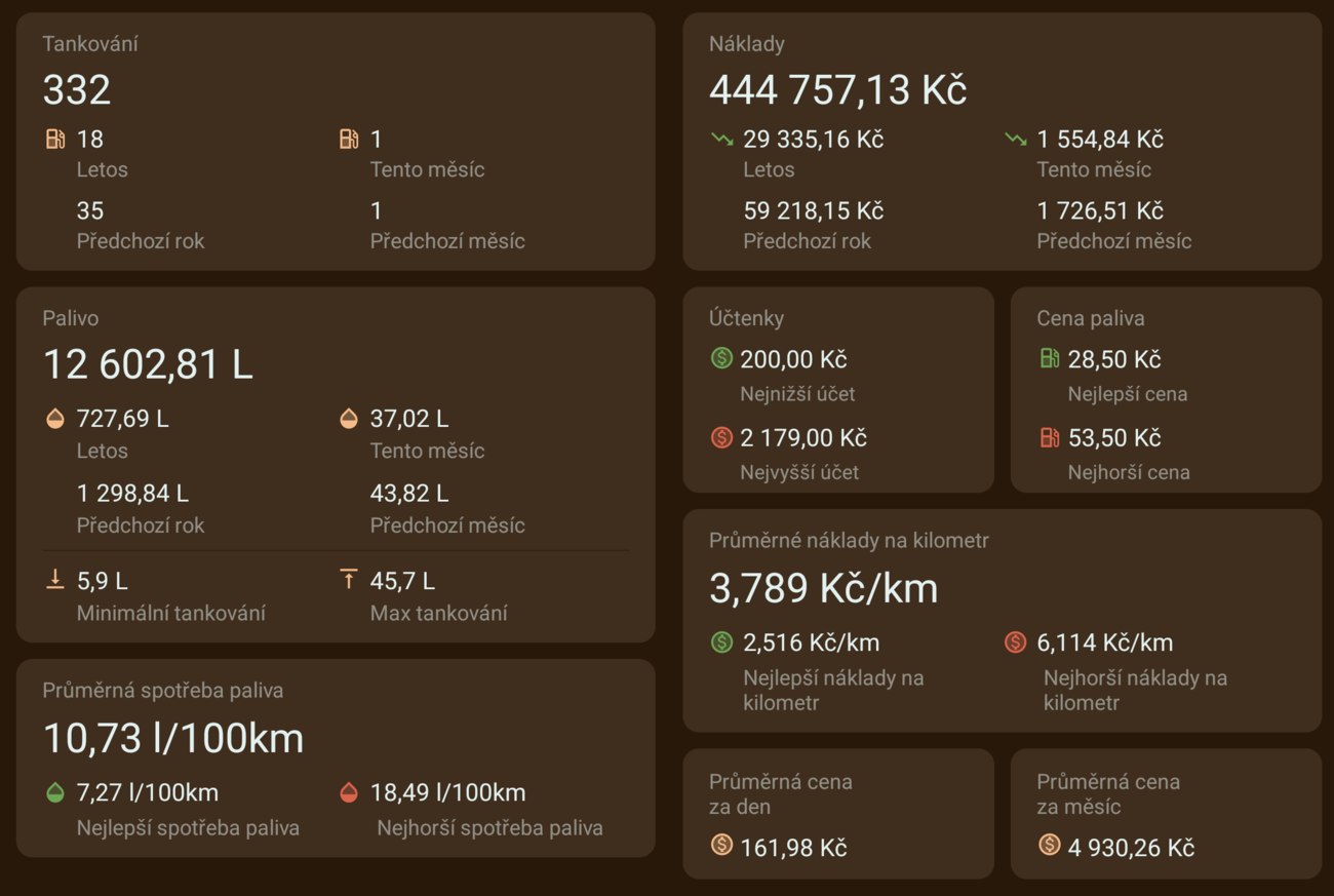 15. 11. 2023, 12:37Gratuluji k výbornému výběru auta, to i toho předchozího :-) - měl jsem 5g, 6g, 8g, 9g. Po 20 letech u Hondy jsem přešel na Kia / Hyundai, sice nelituji, ale trochu mě to mrzí. Co je to za aplikaci na sledování nákladů ?