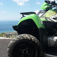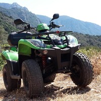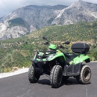 Ale, když jsem už začal tak dynamicky a nalákal vás na ten automobilový zážitek, je čas to rozvést. Na čtyřkolce vážně zažijete hodně intenzivní řidičskou zábavu. Pokud umíte na motorce, fakt, mít před sebou řidítka vás nerozhází. Pokud jste kdy jezdili zahradní Terrou, ani ovládání plynu páčkou pod pravým heftem ne. O moc víc se nemusíte starat. Pravá brzdová páčka ovládá přední brzdu a levá zase zadní brzdu a to máte k dispozici ještě nožní „ručku“. Zásada ježdění se čtyřkolkou je plynulost a menší nájezd do zatáčky, ze které pak už velmi brzy začnete plně akcelerovat ven. Je potřeba nepřehnat nájezd, nevyvolat nedotáčivost, která navíc může velice rychle umět vyústit v jízdu po dvou kolech a kolostřešní situaci. A tohle máte nato tata. Kdo neumí na motorce a neumí se správně naklánět do zatáček a jet zatáčku se správným pohledem stylem koukám kam jedu se stále přidaným plynem, dostane se tutově do bodu krizového vyděšení. A to typicky v momentě, kdy pojede pravotočivou zatáčku mírně z kopce, přežene nájezd, lekne se, ubere plyn a celá čtyřkolka se bude vesele sunout ven do protisměru, do olivivého háje, do kamenné zídky, čí přímo do kamenité vinice. Tohle jí nesmíte dovolit. Když se naučíte správně zvládnout nájezd, což jde líp na šotolinové cestě , dočkáte se jen náznaku nedotáčivosti, ale plynem krásně přesunete váhu na zadní poháněná kola, ty se vlivem absence diferenciálu trošku smeknou, povolíte si na řidítkách, korigujete plyn a krásně, jemně driftujete ze zatáčky ven.