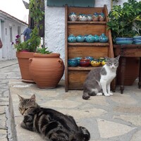 Kočky jsou vlastně na Samosu všudypřítomné. Jedna dokonce umí snad i prodávat bižuterii v místním obchůdku pro turisty. Jiné, se jen tak nečinně poflakují po okolí, jako jsme to ostatně dělali celý minulý víkend i my se slečnou Krabovou. Všudypřítomné jsou na tomto ostrově i auta. I kdybych si býval byl na víkend neobjednal podívanou v podobě rallye klasických veteránů a youngtimerů „Tour de Samos“, bylo stále na co koukat.