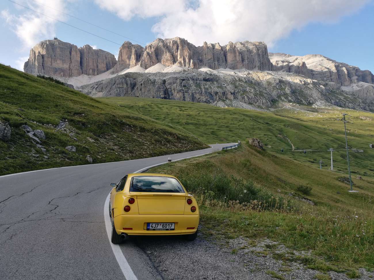 No, nejsem sice úplně z cukru, ale že bych si liboval ve skrčenecké kultuře, to se říct nedá. Uvědomil jsem si však, že mě po celých dnech řízení vůbec nebolí záda z kožených sedaček, a ačkoliv klimatizace nefunguje, tak se celkem dobře záda odvětrávaly i ve vedrech. Ta noc nebyla hrozná. Na řidičově straně k úplnému pohodlí překáží pedály, u spolujezdce se však osoba 180 cm prakticky natáhne a s trochou vycpávek z oblečení pod bedra a hlavu i vyspí. Čekal jsem to horší. Druhý den jsme si jeli projet známý průsmysk Passo Falzarego, kde jsme zaparkovali na prasáka na silnici jako každý druhý nejen Ital, vylezli si nějaký ten kopec prošpikovaný zákopama z první světové (člověk tam cítí zvláštní respekt), a pak se vydali dál pod horu Marmoladu ke kempu v Canazei. Po vyvenčení a lehkém opláchnutí už jsme z kempu museli odejít, protože jsme tam samozřejmě neplatili a tudíž neměli co dělat. :) Naštěstí jsme naši druhou noc, strávenou na parkovišti před kempem, měli za sousedy podobné socky z Německa, kteří s pětkovým bávem v kombíku přespávali vzadu. Jen mě mrzí, že jsem jim čuměl dost dlouho do auta, než jsem přišel na to, že tam někdo vlastně je. Ale místní politi na nás nezavolali, takže asi dobré.