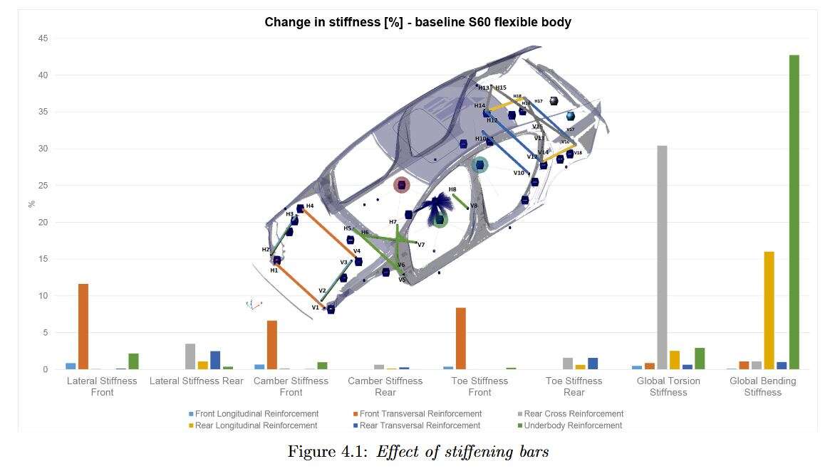 Některé úpravy nemají reálný dopad nebo se dokonce v kombinaci vzájemně eliminují – pro více info doporučuji projít celou práci v odkaze. V případě studované s60 se potvrdilo, že zvýšení tuhosti přední části vede k větší nedotáčivosti, což lze přeložit i tak, jak to znají majitelé RWD, kdy silnější zadní stabilizátor vede k větší přetáčivosti (auto ztrácí mechanický grip). Pro celý text https://publications.lib.chalmers.se/records/fulltext/219391/219391.pdf
