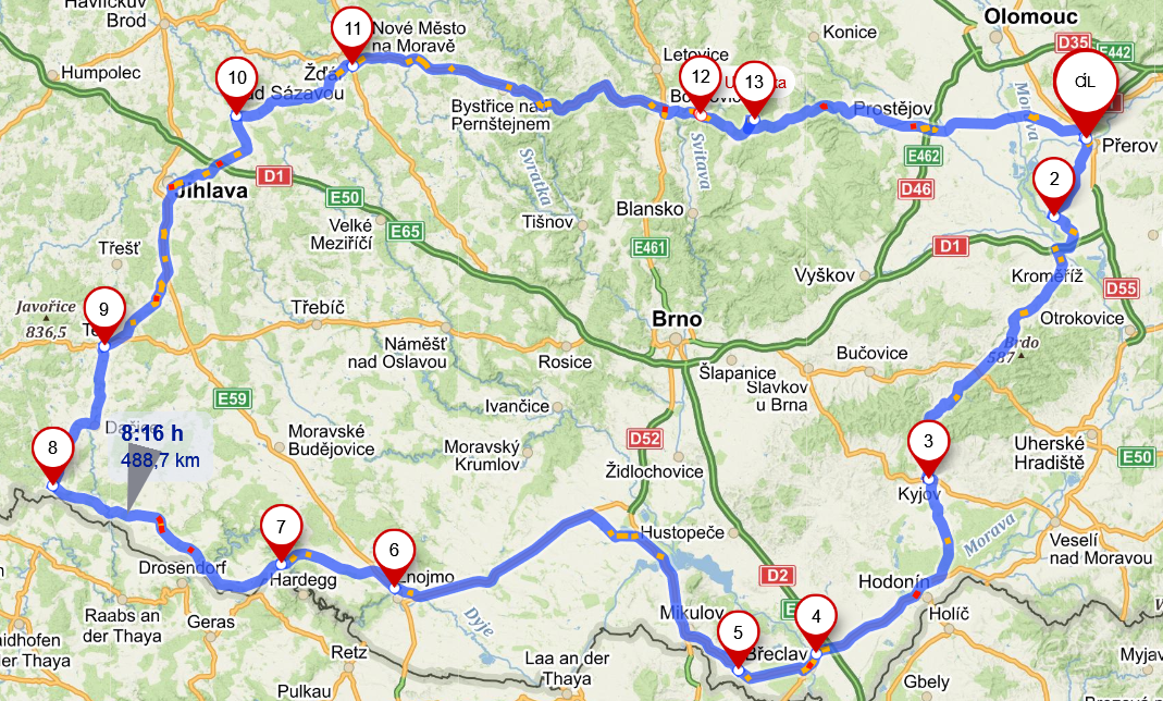 Trasa 2. etapy - 489km / čas 8:16