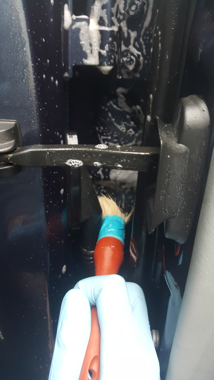 Čištění mezidveřních prostorů a pantů pomocí štětce