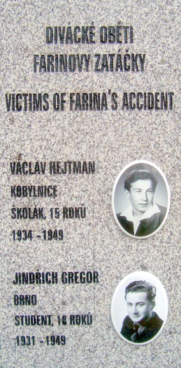 Část pomníku ve farinově zatáčce se jmény obětí události roku 1949. Fotograf: