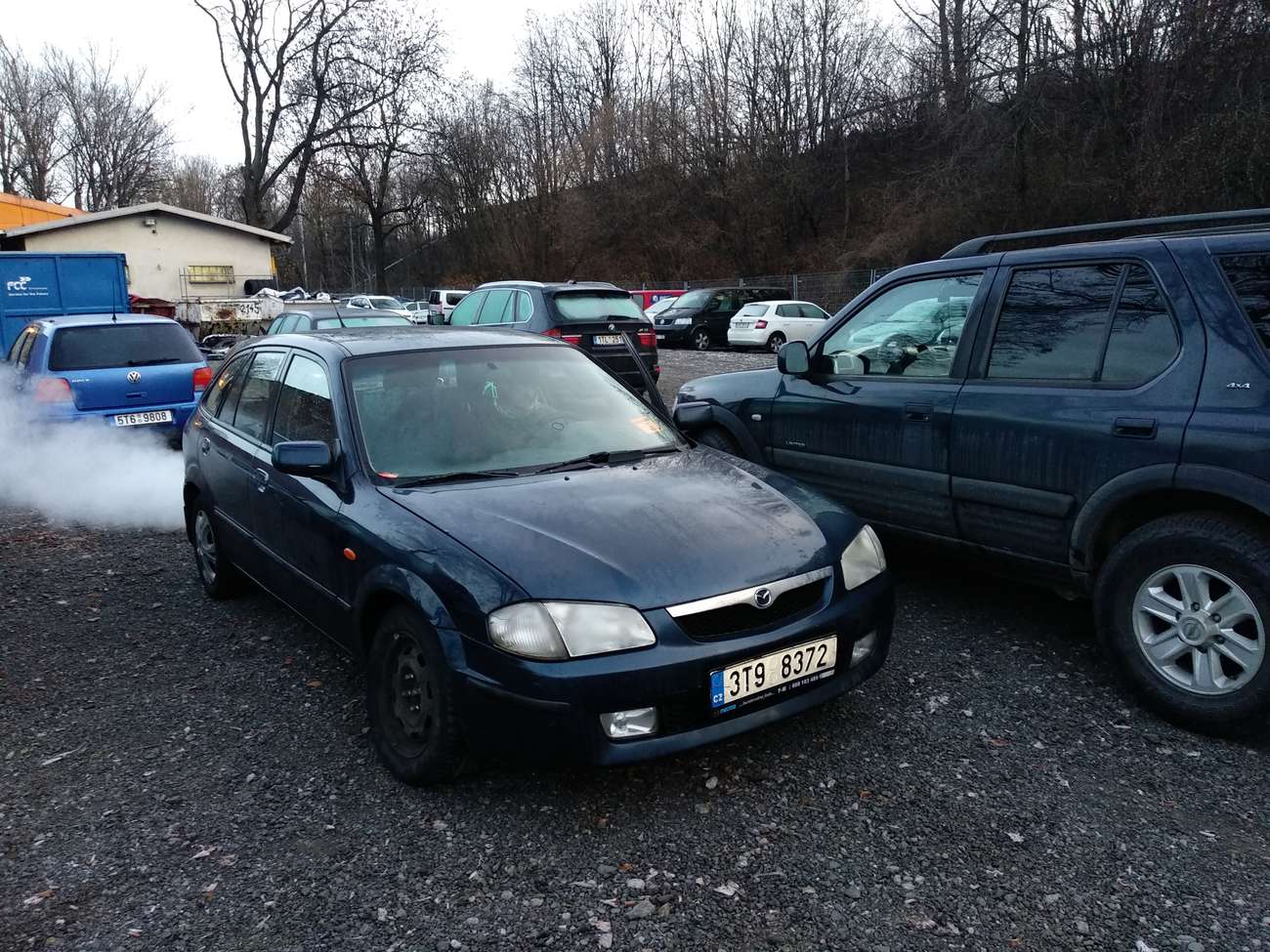Má stařičká Mazda 323f s poslením vzdechem, všimni si přední kola mírně šejdrem...